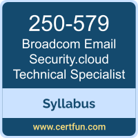 Use this quick start guide to collect all the information about Broadcom Email Security.cloud Technical Specialist (250-579) Certification exam. This study guide provides a list of objectives and resources that will help you prepare for items on the 250-579 Symantec Email Security.cloud R2 Technical Specialist exam. The Sample Questions will help you identify the type and difficulty level of the questions and the Practice Exams will make you familiar with the format and environment of an exam. You should refer this guide carefully before attempting your actual Broadcom Email Security.cloud Technical Specialist certification exam.