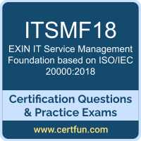 ITSMF18 Dumps, ITSMF18 PDF, ITSMF18 Braindumps, EXIN ITSMF18 Questions PDF, EXIN ITSMF18 VCE, EXIN IT Service Management Foundation based on ISO/IEC 20000:2018 DumpsWe have designed EXIN ITSMF18 practice exams to help you prepare for the EXIN IT Service Management Foundation based on ISO/IEC 20000:2018 certification exam. This practice exam provides you with an opportunity to become familiar with the question topics and formats found in the actual EXIN IT Service Management Foundation based on ISO/IEC 20000:2018 exam. It also helps you identify topics in which you are already well prepared and topics on which you may need further training. We have composed questions for this EXIN ITSMF18 practice test by collecting inputs from recently certified candidates and our community users. We have rigorously maintained the topic weights, passing score, exam duration and question format in our mock exam as per the EXIN IT Service Management Foundation based on ISO/IEC 20000:2018 certification syllabus. Simply, our EXIN IT Service Management Foundation based on ISO/IEC 20000:2018 practice exam builds readiness and confidence for the actual certification exam.