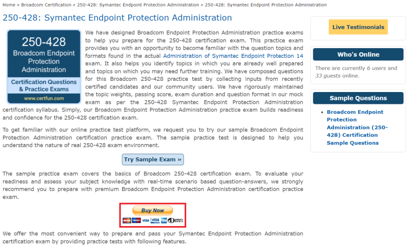 2. Open the Certification Practice Exam page which covers your Certification Exam and Clicks on "Buy Now" button.